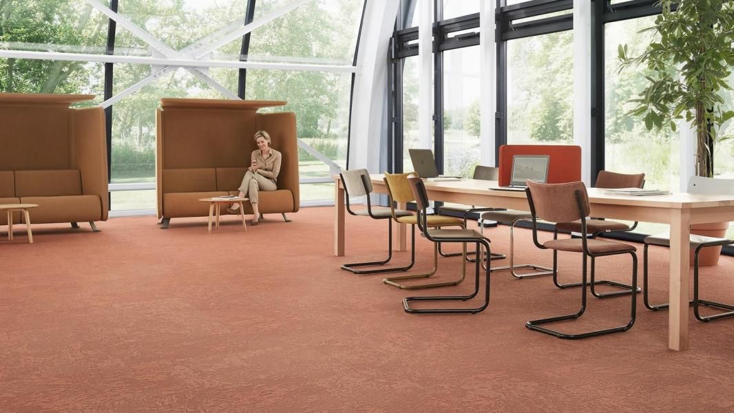 De Desso Desert AirMaster heeft een, door de natuur geïnspireerd, diffuus patroon dat vloeren een marmereffect geeft. Dankzij het willekeurige patroon op de toplaag en keuze uit twee gekleurde lagen daaronder is elke tapijttegel anders en zijn de designmogelijkheden eindeloos. De negen neutrale tinten van de collectie, van warm tot koel en van licht tot donker, worden aangevuld met drie natuurlijke accenttinten. Met het brede kleurengamma van Desert AirMaster kunnen zowel kalme, rustgevende ruimten als stimulerende omgevingen worden gecreëerd. Het poolgewicht is 685 gr/m2, 100% PA6 garens.